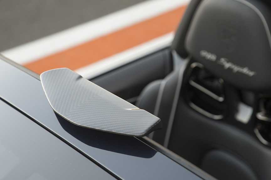 Exposed CFRP mirror housings of the Weissach Edition Porsche