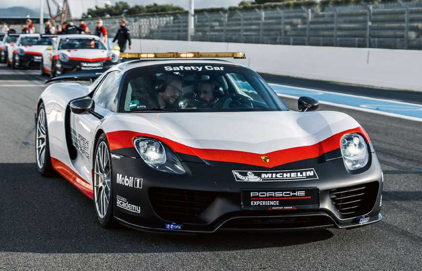 918 Spyder with Weissach pack as the safety car at the 2019 Porsche Racing Experience. Porsche