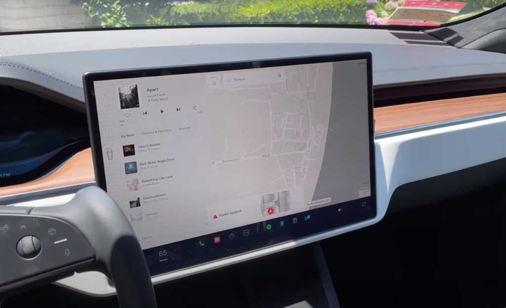 На экран бортового компьютера Тесла model S, разрешением 1080×1920 пикселей, вынесены все функции управления. Меню очень удобное, логичное. Большой экран можно разделить на две части, используя два приложения одновременно. Интерфейс включает в себя следующее: