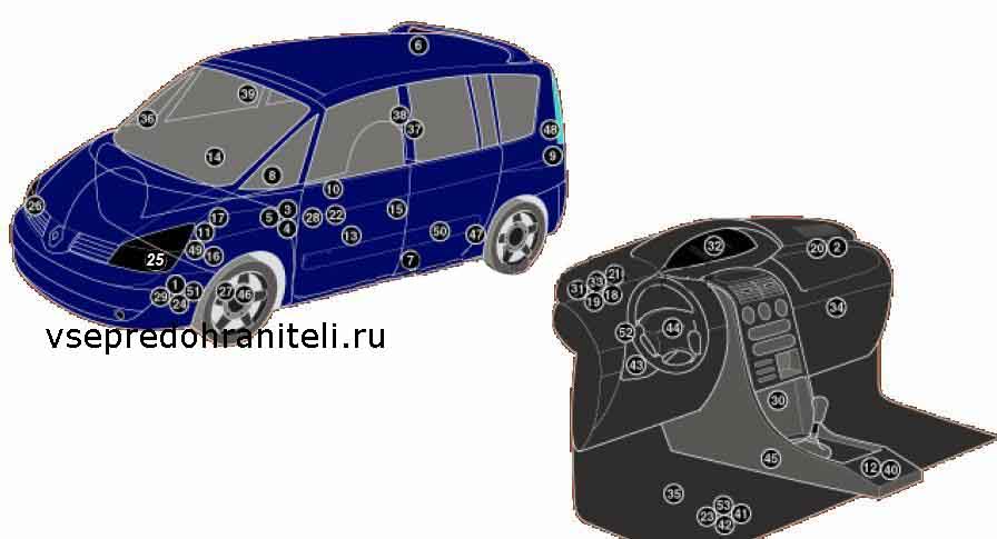| 53 | Датчик бокового ускорения- включает в себя датчик бокового перемещения (с ESP)-под сиденьем |