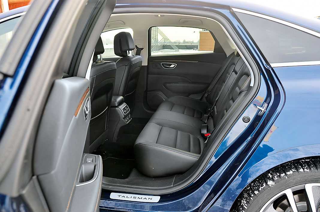 Talisman – совершенно иной, более высокий уровень. По степени солидности этот автомобиль не уступает, скажем, Volkswagen Passat или Skoda Superb. И по габаритам, кстати, тоже. Более того, он крупнее «немца» по всем параметрам, а «чеху» проигрывает 13 мм в длине (4861 против 4848 мм) и 32 мм в расстоянии между осями (2841 против 2809 мм). Последний показатель существенен, но Superb едва ли не эталон D-класса по просторности интерьера. Talisman, впрочем, ему если и уступает, то самую малость. Расстояние от подушки сиденья до потолка во французском седане равно 902 и 855 мм спереди и сзади соответственно, а запас перед коленями на втором ряду – 262 мм.