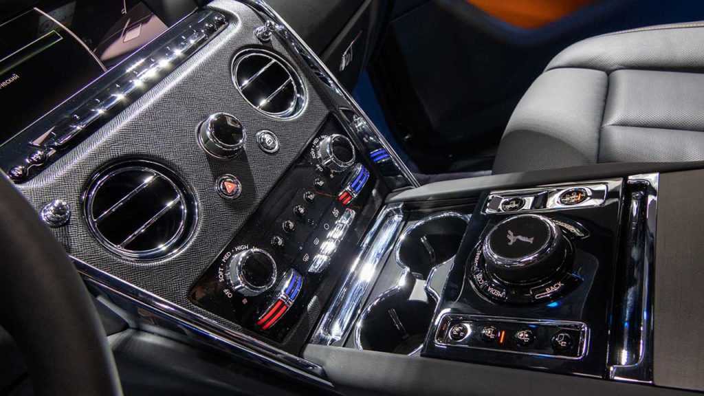 - Старомодные переключатели температуры без указания конкретных величин градусов. В кроссовер Куллинан установлены сине-красные слайдеры, вращая которые можно добавить прохлады или тепла. Другие считают такое решение оптимальным и гармоничным.