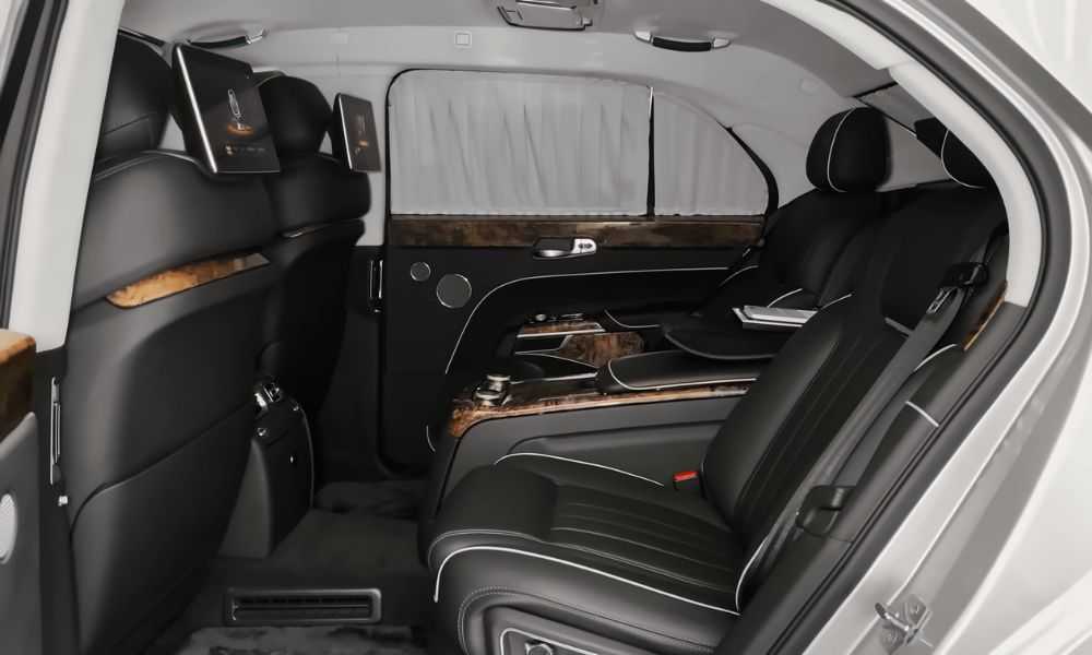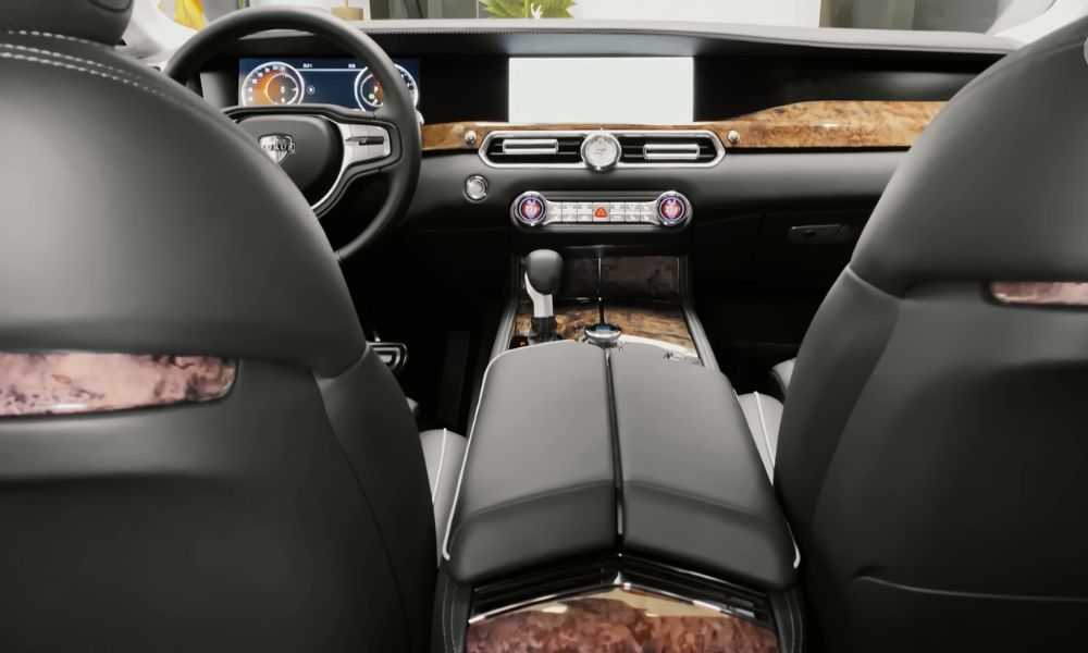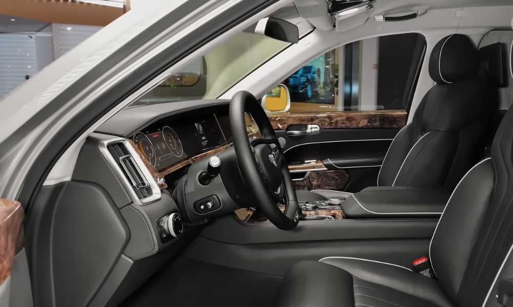 Для обшивки и отделки салона использовались люксовые материалы, включая кожу, древесину элитных пород, а также металл. Еще среди отделочных решений присутствует ткань. На борту автомобиля установлена передовая информационно-развлекательная платформа, которая отличается на штатной мультимедиа в салоне конкурентов.