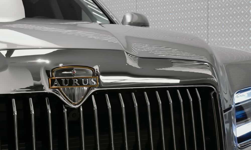 В верхней части лицевой области находится логотип марки в треугольном исполнении и с маркировкой Aurus. Не меньший интерес вызывает передняя оптика, изготовленная в стилистике Rolls-Royce или «свежего» Chrysler 300.