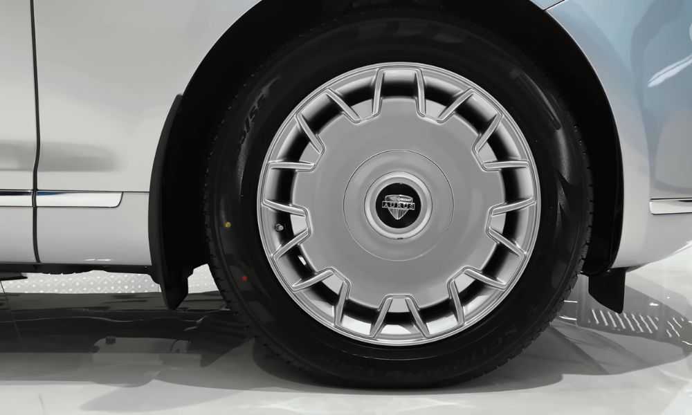 Опирается автомобиль седан или Аурус Сенат Лимузин на огромные 20-дюймовые колесные диски из легкого сплава. Интересно, что покрышки сделан таким образом, чтобы можно было проехать на пробитом колесе около 120 км. Электроника будет в автоматическом порядке подкачивать покрышки. Не обошлось без системы слежения за давлением покрышек. Высота дорожного просвета составила 200 миллиметров.