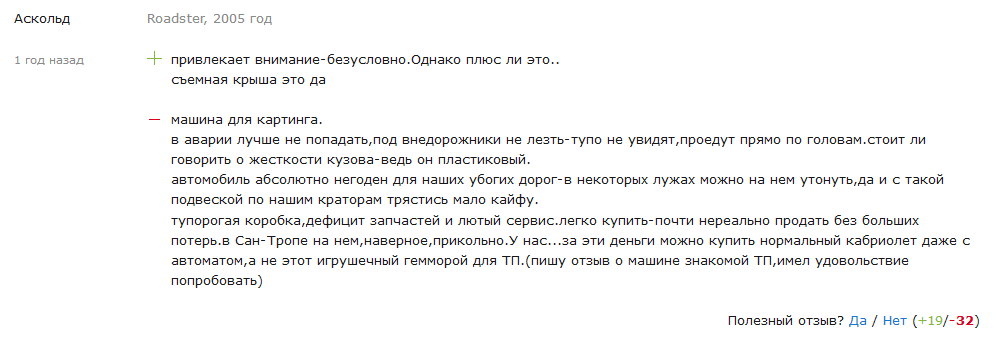 В этом отзыве пишет, что машина ни о чем, еле едет.