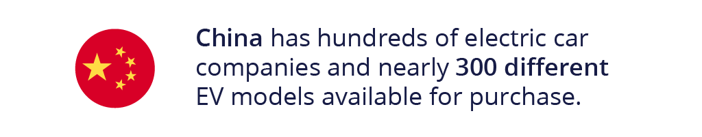 На рынок вышло множество небольших производителей электромобилей, в результате чего на продажу поступило большое количество электромобилей, предлагая потребителям на выбор почти 300 различных моделей.