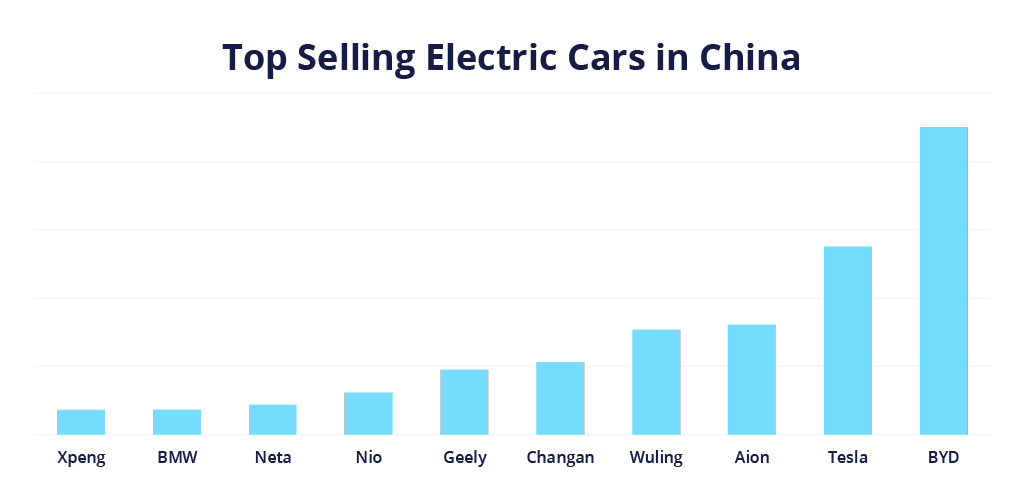 BYD стал самым продаваемым брендом электромобилей в Китае, реализовав 224 729 чисто электрических автомобилей.