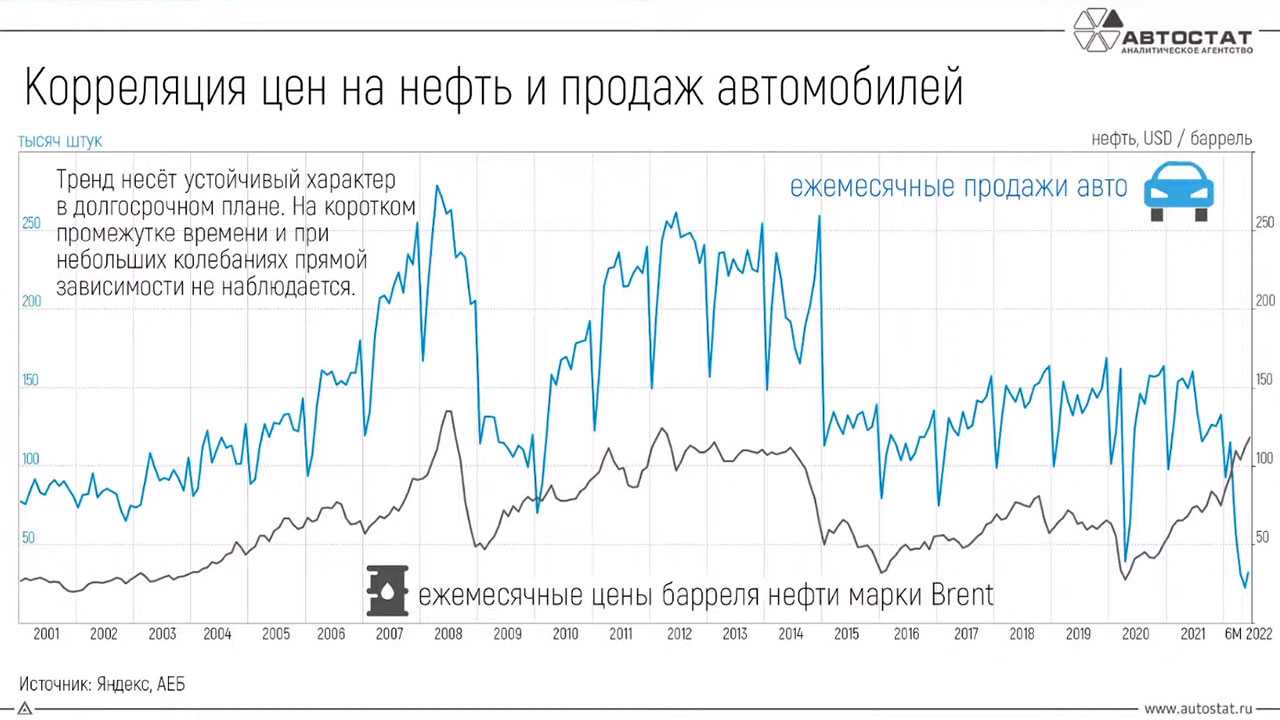 Рис.9. Корреляция цен на нефть и продаж автомобилей. Скриншот видеотрансляции АВТОСТАТ