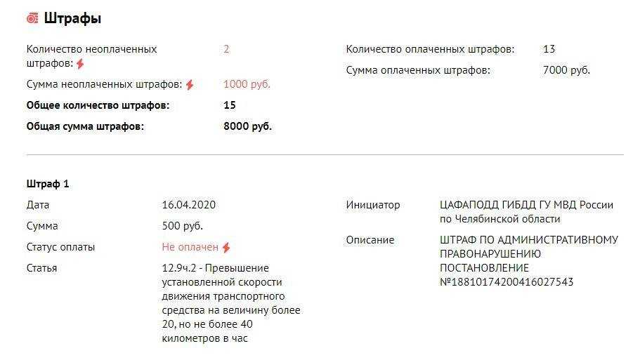 Из проблем в отчете отобразились только неоплаченные штрафы: