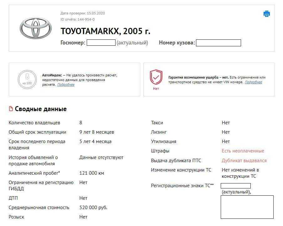 Выбирайте автомобиль с пробегом до 100 тыс. км, мотором 2,5 л (у трехлитрового выше налог) и «чистой» историей. По статистике avtocod.ru, каждый четвертый Mark X продается после ДТП, каждый третий — со скрученным пробегом, каждый шестой — с неоплаченными штрафами.За 400 тыс. рублей нашелся автомобиль 2005 года с самой популярной модификацией и пробегом 230 тыс. км: