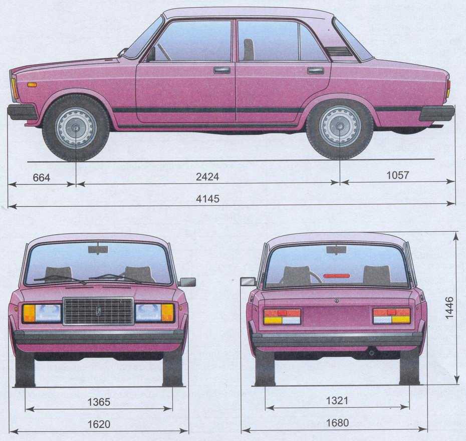 Длина max (мм) Минимальная габаритная длина автомобиля для разных модификаций VAZ 2107