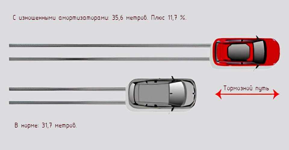 Вне зависимости от расположения стоек (передние или задние) методы проверки их исправной работы идентичны. Зачастую выявить основные проблемы можно без снятия амортизаторов. Для этого достаточно очистить амортизаторы от грязи и внимательно осмотреть. Есть и косвенные методы. В норме тормозной путь составляет 31,7 метров. С неисправными стойками расстояние увеличивается на 11,7 %. Кажется, что это мелочи, но даже лишний метр способен привести к ДТП.