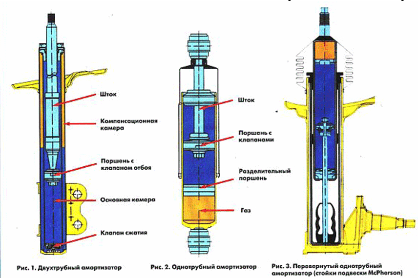 Типы и устройство амортизаторов