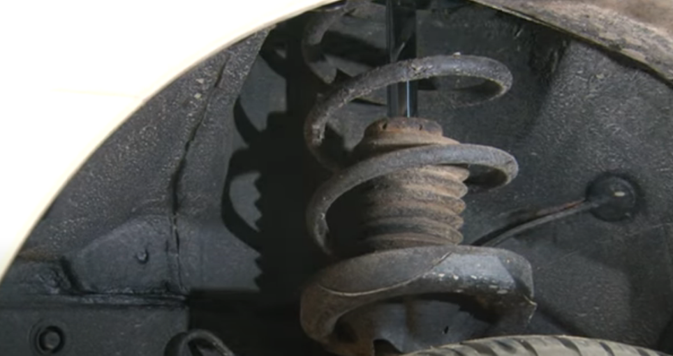 - Надлом пружины. При поломке пружины, в зависимости от участка повреждения, стойка как цельная конструкция теряет жесткость или перестает функционировать. Между отдельными элементами появляется люфт. Этот люфт и становится причиной стука в стойке амортизатора.