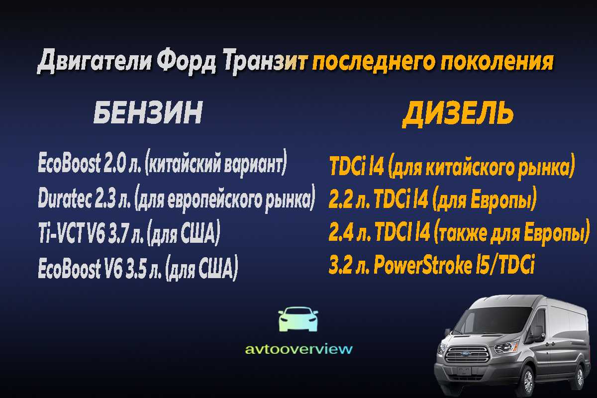 Чаще всего Ford Transit в России можно встретит со следующими моторами: