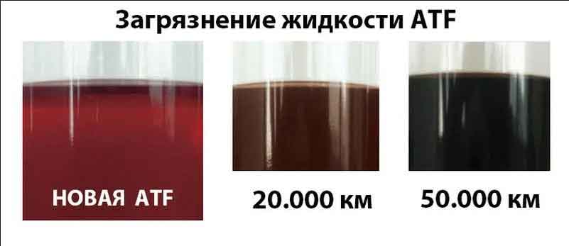 Жидкость для трансмиссии более красная, густая и с характерным запахом. Для тестирования соберите жидкость в емкость с водой и посмотрите на реакцию.