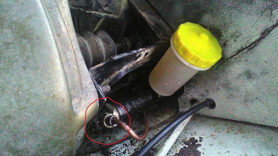 - нажимают 4-5 раз на педаль сцепления (чтобы по системе трубок пошла жидкость) и фиксируют её;