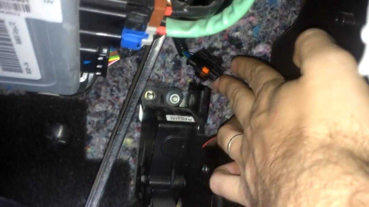 Устанавливаем педаль газа в обратной последовательности. Чтобы случайно не погнуть выводы в разъеме датчика педали газа, перед установкой подсоединяем колодку проводов.