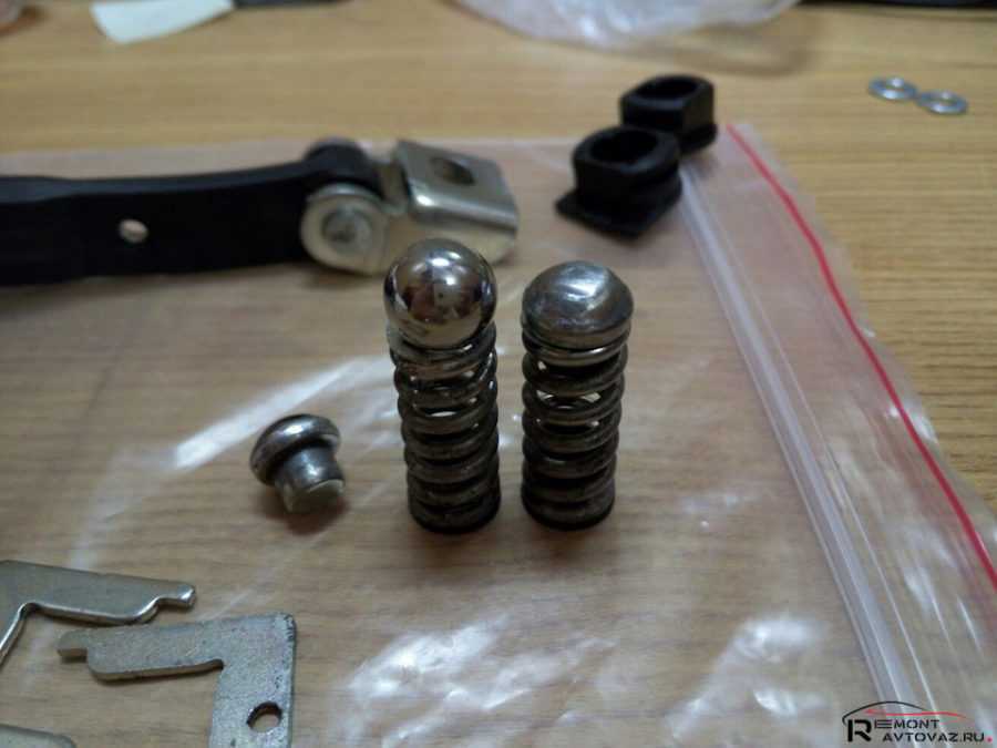 Достав ограничитель из двери, его необходимо разобрать. Механизм фиксатора находится в пластиковом корпусе, открыть который можно при помощи ножа или тонкой плоской отвертки. Предметом доработки является пружина с металлической полусферой, которая отвечает за процесс фиксации. Причиной всех проблем является упор в форме грибка. Он плохо фиксирует механизм, и его лучше заменить металлическим шариком с диаметром около 12 мм. Достать такие шарики можно из подходящего подшипника или купить в охотничьем магазине. Некоторые применяют для этих целей простую гайку, но использование шарика будет надежнее.
