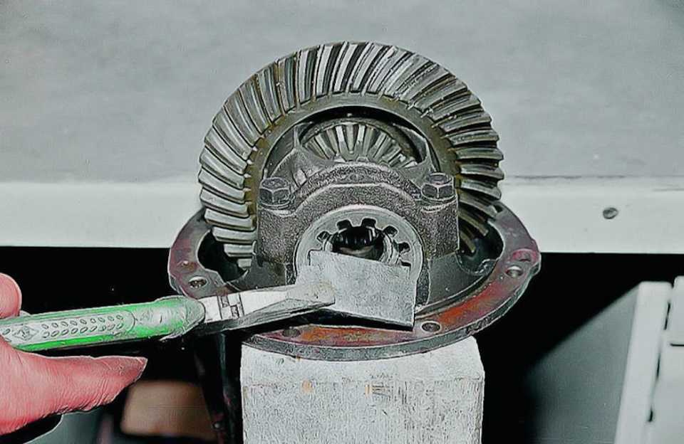 Оно должно быть тоньше снятого на величину люфта и дополнительно тоньше на 0,05 мм – если подшипники ведущей шестерни новые или на 0,01 мм – если подшипники оставлены прежние.