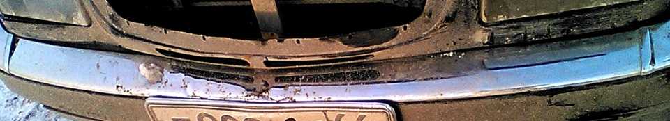 В августе этого года возникла неприятность: на улице Малышева пасмурным летним днем по невнимательности нанес удар праворульной Тойоте, в результате чего пострадал и мой бампер.Теперь в очередной период безделья вмятина попала мне на глаза и мысль о ремонте больше не давала покоя. Поскольку цены на хром бампера начинаются от 1500Р, я просто решил от него избавиться, оставив черную поверхность.Итак, что мы имеем:1. Ржавый хром