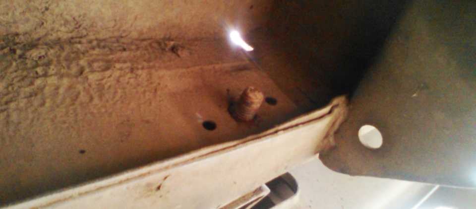 Далее, чтобы снять хромированные накладки, выкручиваем 10 саморезов и снимаем резиновую ленту. Выкручиваем болты крепления накладок и снимаем накладки. Получаем чистую поверхность со следами ржавчины: