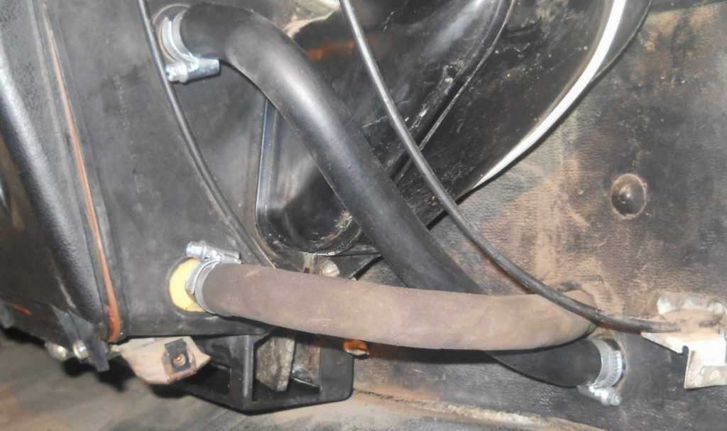 Если смотреть на печку изнутри (то есть с сиденья водителя автомобиля), то нельзя увидеть все составляющие её части. Сразу же за панелью управления монтируется небольшой радиатор, к которому присоединяются два патрубка для циркуляции тосола.