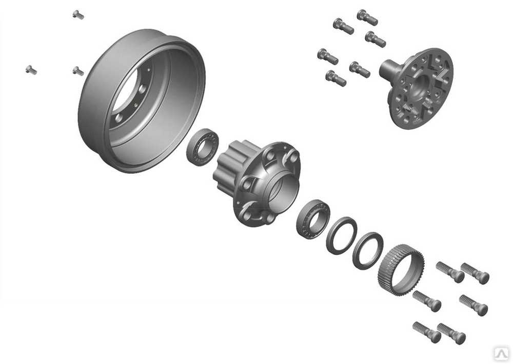 - Крепят барабан. Винты и гнезда предварительно смазывают. Проверяют как вращается ступица с полуосью, нет ли люфта, биения.