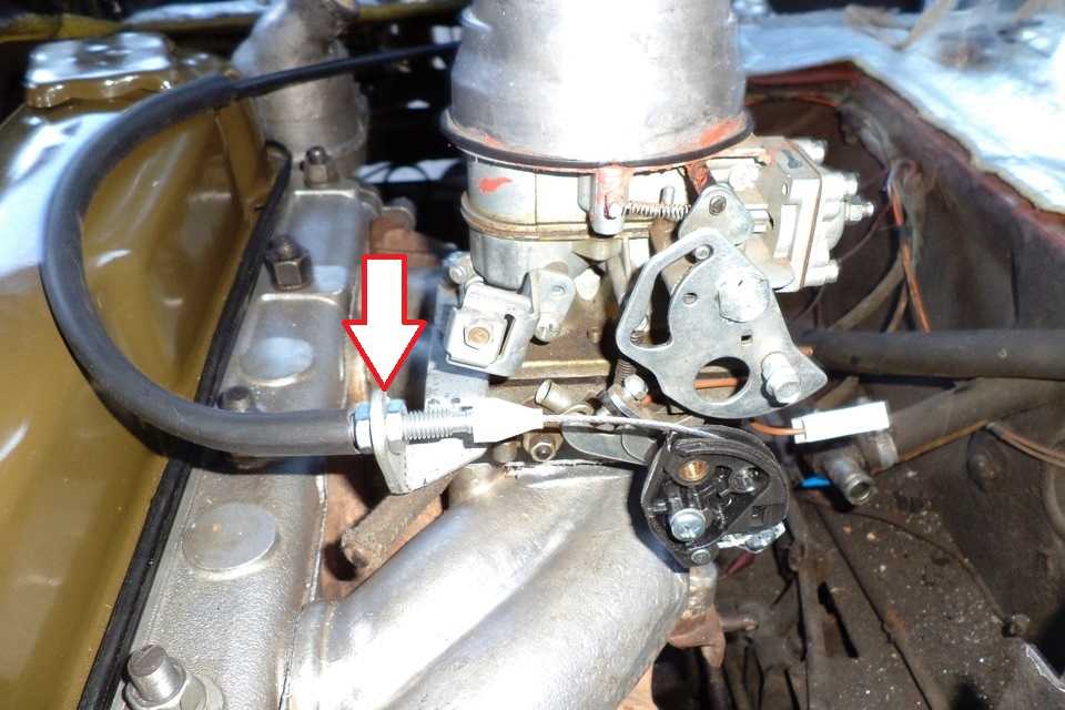 Перемещая втулку с резьбой, вы двигаете точку упора (соответственно и точку нулевого усилия) ближе или дальше от рычага дроссельной заслонки карбюратора.