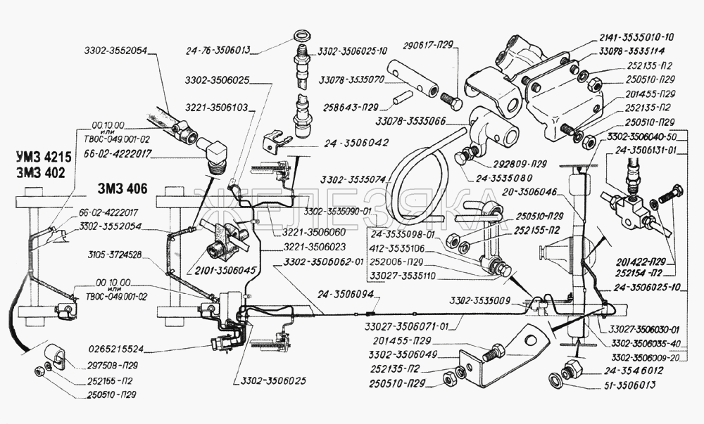 Узлы и агрегаты тормозной системы соединены между собой стальными трубками и резиновыми шлангами.