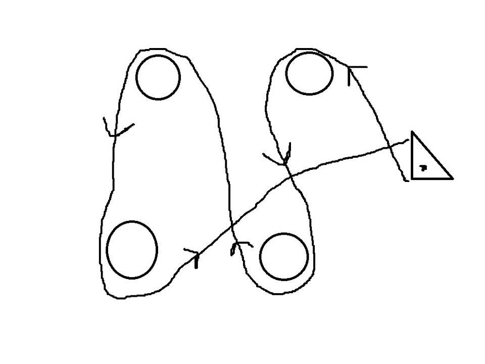 - Скрестите нижнюю и верхнюю ветви, выходящие из барабана механизма.