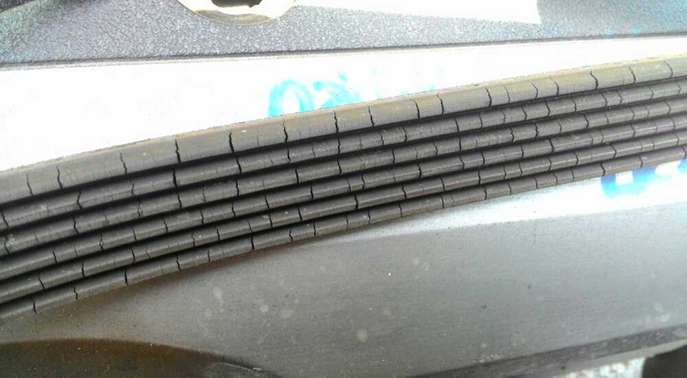 Если неприятные звуки характерны для сырой погоды или в холодное время года, тогда, скорее всего, нужно менять ролик натяжителя из-за полетевшего подшипника, и обычно такая операция совмещается с заменой ремня при его существенном износе. Это наличие трещин на внешней стороне ремня, сквозных повреждений, потёртостей, отслоений материала.
