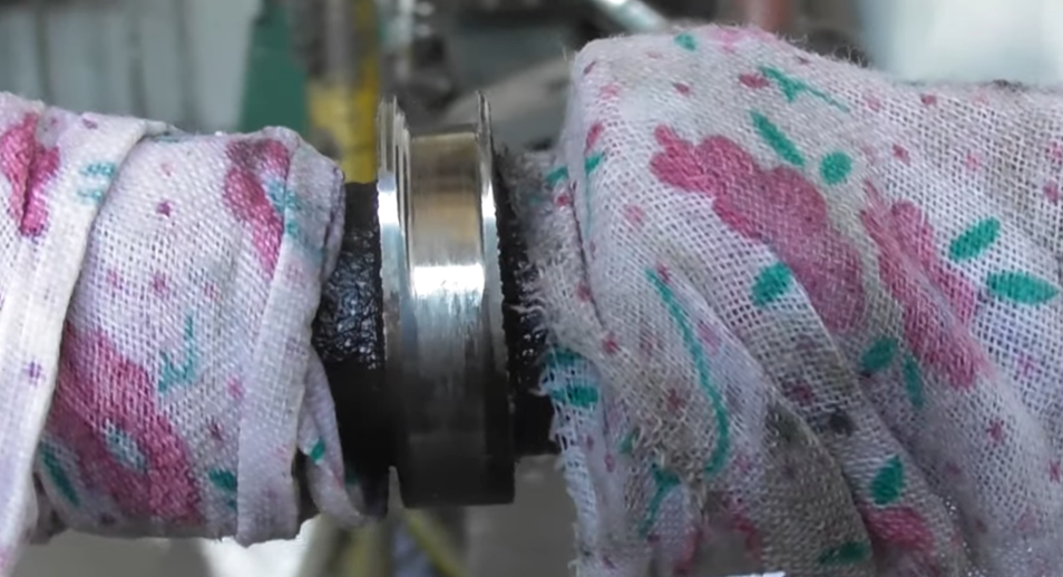 Это рабочая шейка-толкатель. Я ее буду наваривать, а человек сам будет дорабатывать. Распредвал обмотал тряпкой, чтобы окалина не попадала на другие шейки. Я уверен, многие считают, что это большая глупость. Но на какое-то время это поможет.