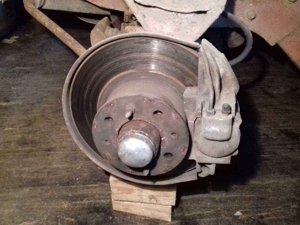- Под колеса следует подставить башмаки, а затем установить домкрат и поднять переднюю часть. После снимается колесо, а затем очищается поверхность суппорта от грязи и пыли.