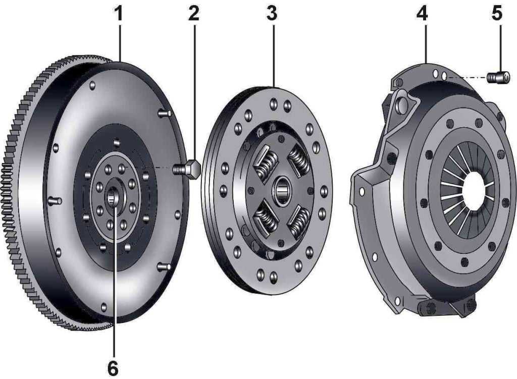 Кожух корзины болтами крепится к маховику. Возвратная диафрагменная пружина крепится к корзине и воздействует на выжимной подшипник. Что касается нажимного диска, то он соединяет ведомый диск с маховиком.