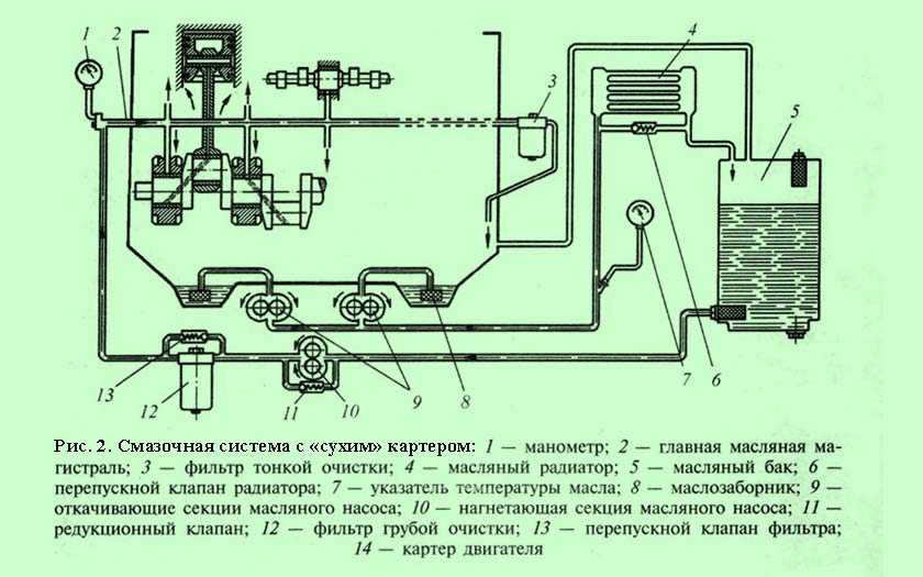 Решает эти проблемы система смазки двигателя. Главное, что выполняет система смазки — заменяет «сухое» трение на «мокрое», в результате трение между трущимися деталями снижается на порядок, и двигатель может нормально работать.