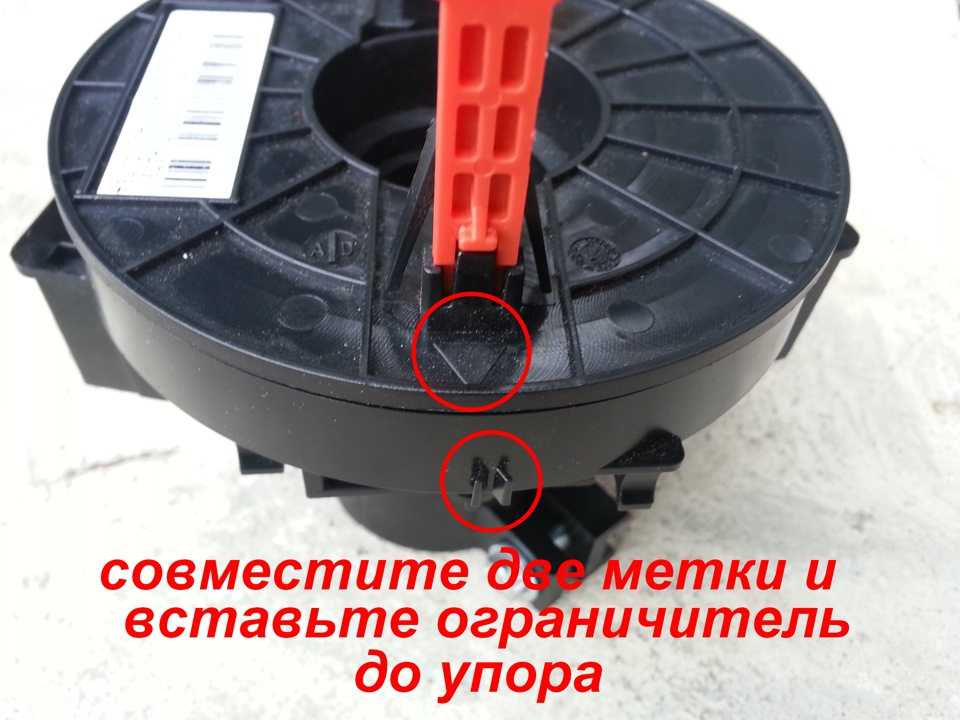 При снятии рулевого колеса подвижная часть контактного кольца не фиксируется автоматически от вращения. В результате при сборке может быть нарушено центральное положение подвижной части кольца. При этом велика вероятность повреждения контактного кольца при повороте рулевого колеса в одно из крайних положений. Для фиксации кольца рулевое колесо комплектуется специальным стопором.