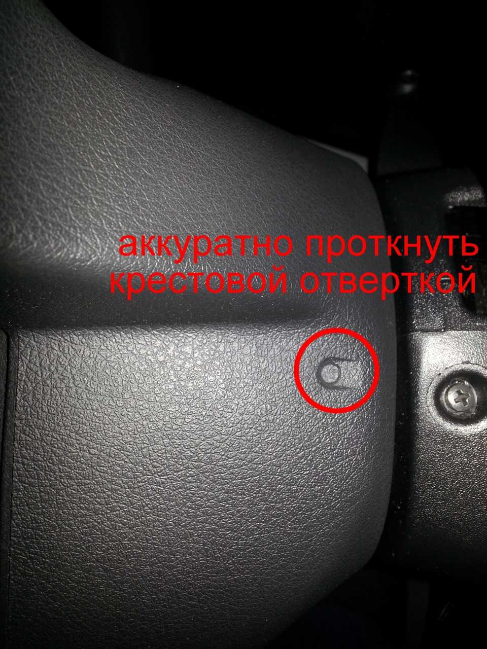 Тонкой плоской отверткой проткните отверстие, отмеченное на рулевом колесе.
