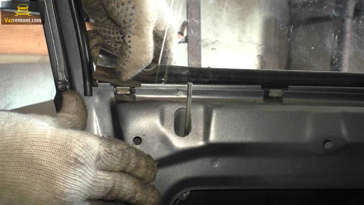 Планка стеклоподъемника должна быть полностью поднята. Демонтируется трос на ролике снизу стекла. Затем аккуратно снимаются уплотнители (бархотки).