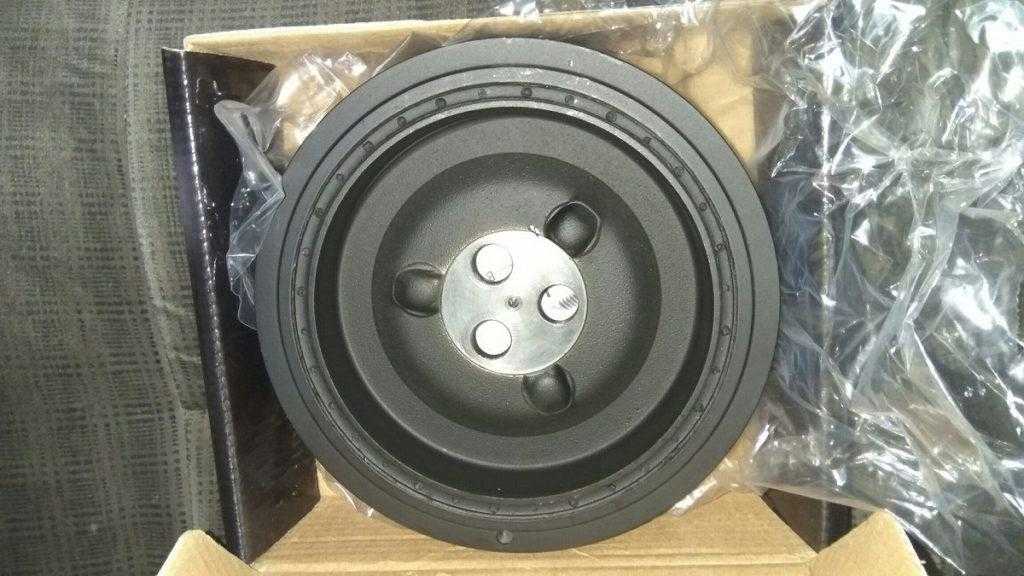 Шкив может быть обычным или демпферным. Единственное различие между ними состоит в следующем: на поверхности демпферного шкива находится большое внешнее кольцо, отделенное от основной части детали резиновым уплотнителем, уменьшающим возникающую в процессе езды вибрацию.