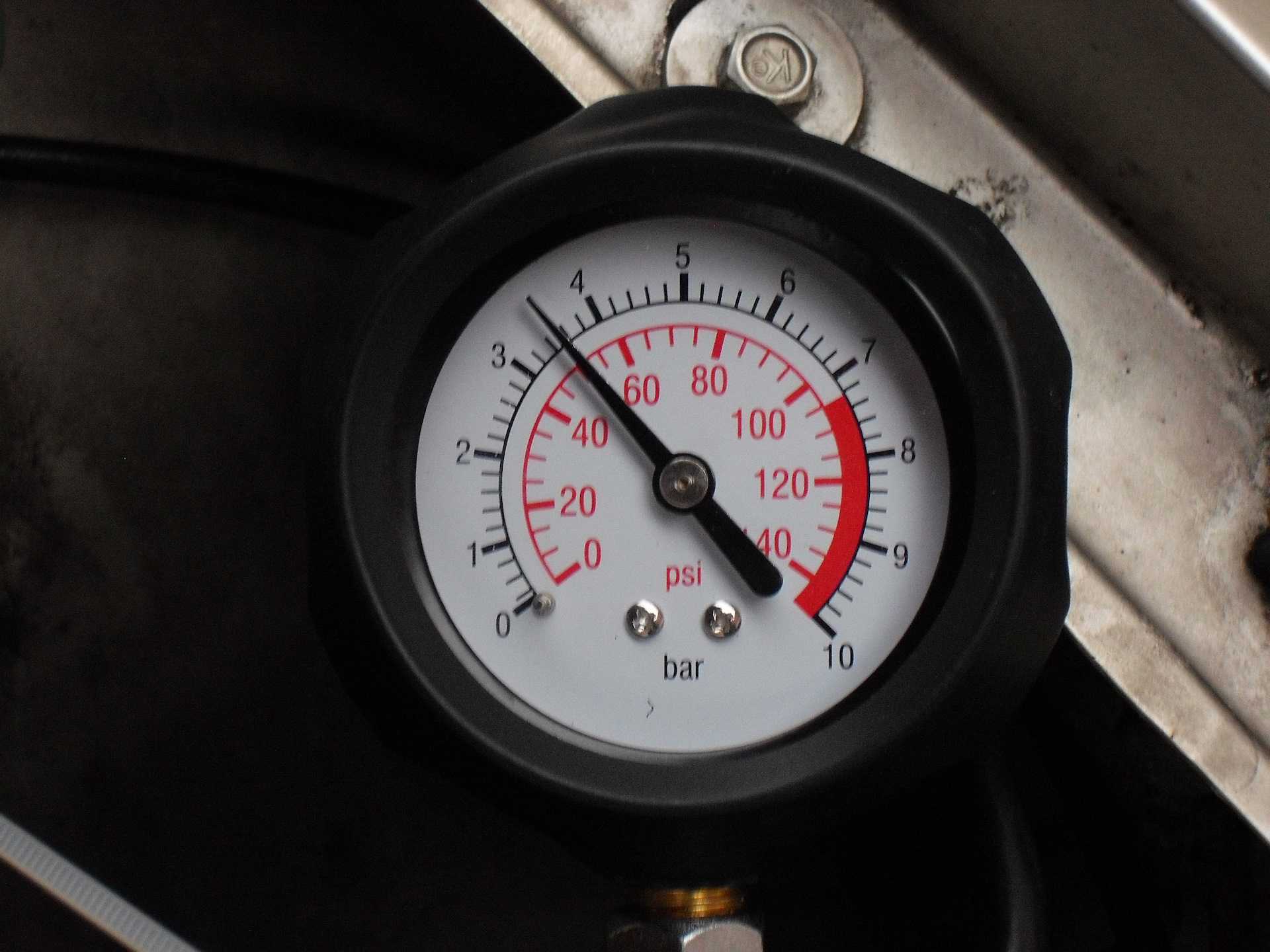 - Подключить к штуцеру манометр, убедиться в герметичности соединения между ними