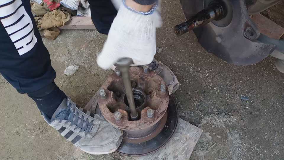Ступичным ключом открутил колпак ступицы, вытащил шплинт и открутил ступичную гайку. Далее снял ступицу