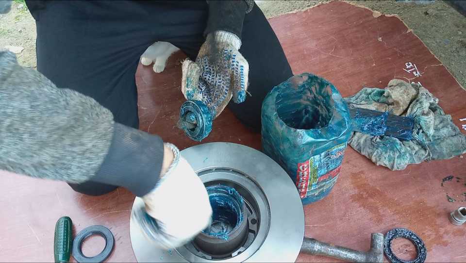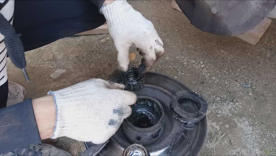 Взял зубило и остатки диска получилось сбить. Потом решил налить солярку в обрезанную канистру, чтобы отмыть подшипники от старой смазки.