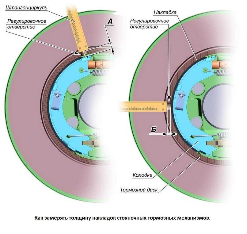По мере износа колодок кольца сдвигаются на величину износа. В верхней части тормозных колодок расположены эксцентрики для регулировки положения колодок после их замены. Минимальная допустимая толщина накладок задних тормозных колодок — 1 мм. Максимально допустимый внутренний диаметр тормозного диаметр тормозного барабана газель — мм.