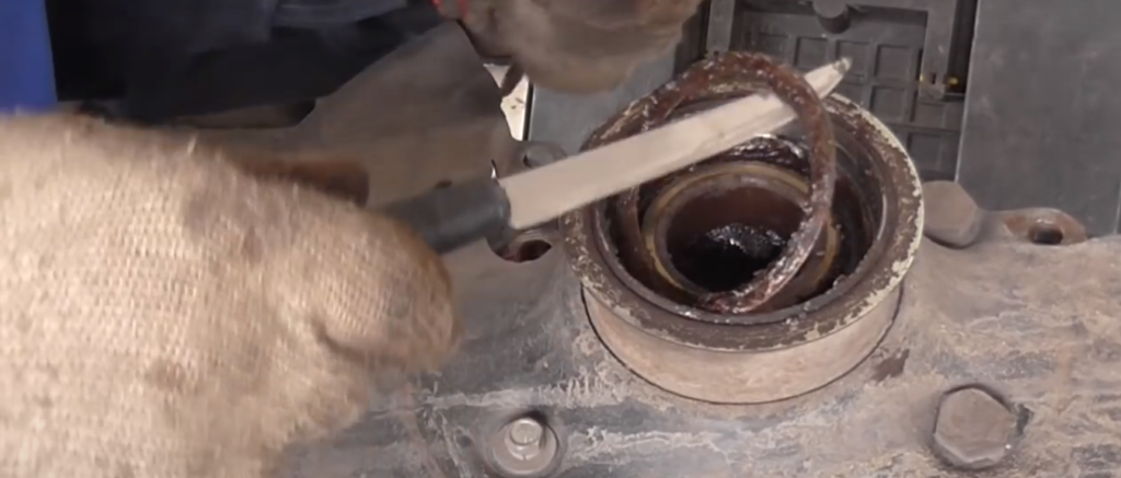 9. Сбиваем шаровые опоры с поворотного кулака. Как это сделать — описано здесь. После этого вынимаем поворотный кулак и снимаем с подшипника наружный сальник: