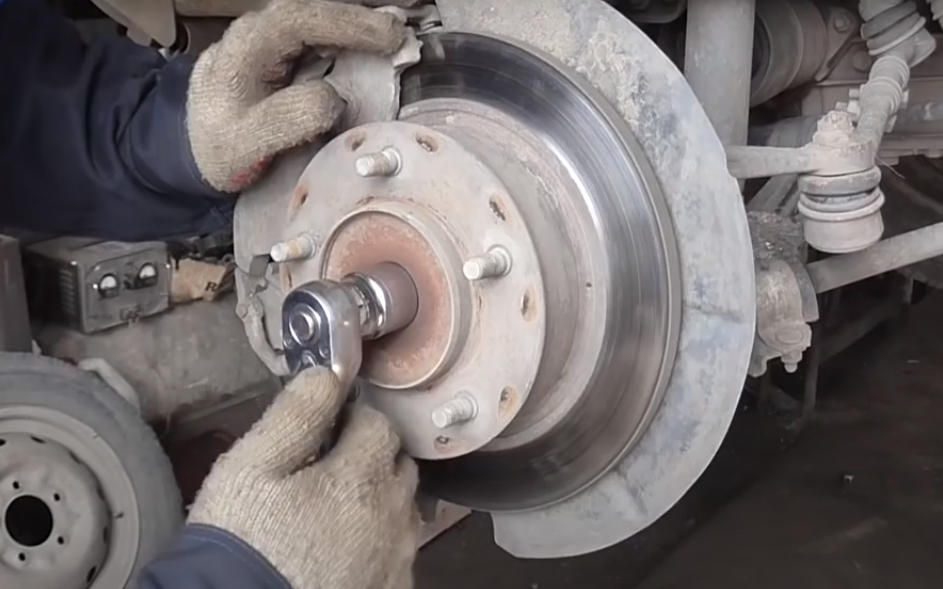 2. Раскерните гайку на 27 ступичного подшипника и открутите ее: