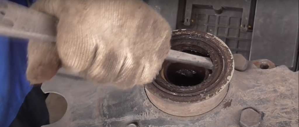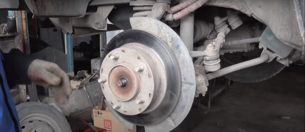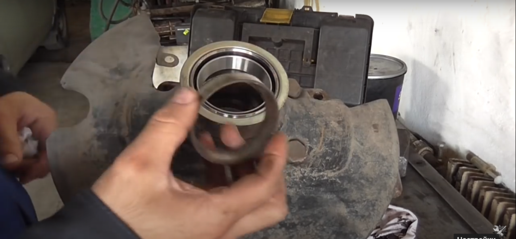 На фото ниже показано, куда упирается выколотка для снятия наружной обоймы ступичного подшипника Lada 4×4: