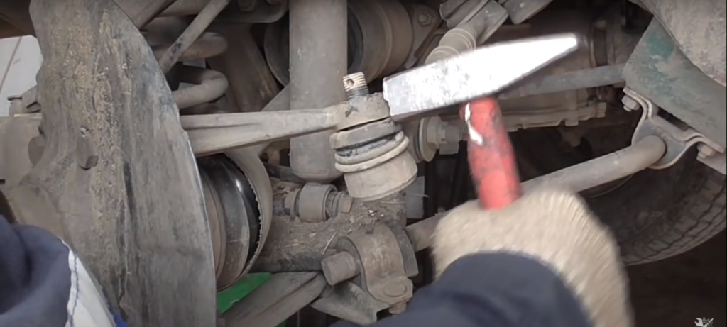 8. Нанося легкие удары по наконечнику и проушине, сбиваем его с поворотного кулака Или используем съемник: