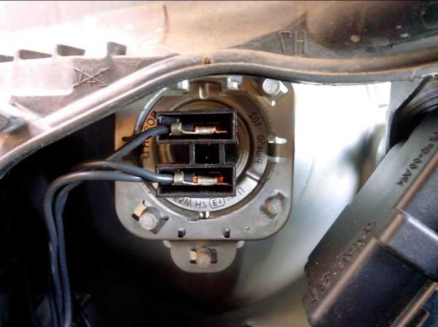 После этого ее удерживает лишь штекер проводов, который надо отсоединить. Затем открутить 4 винта крепления задней крышки фары и снять крышку.